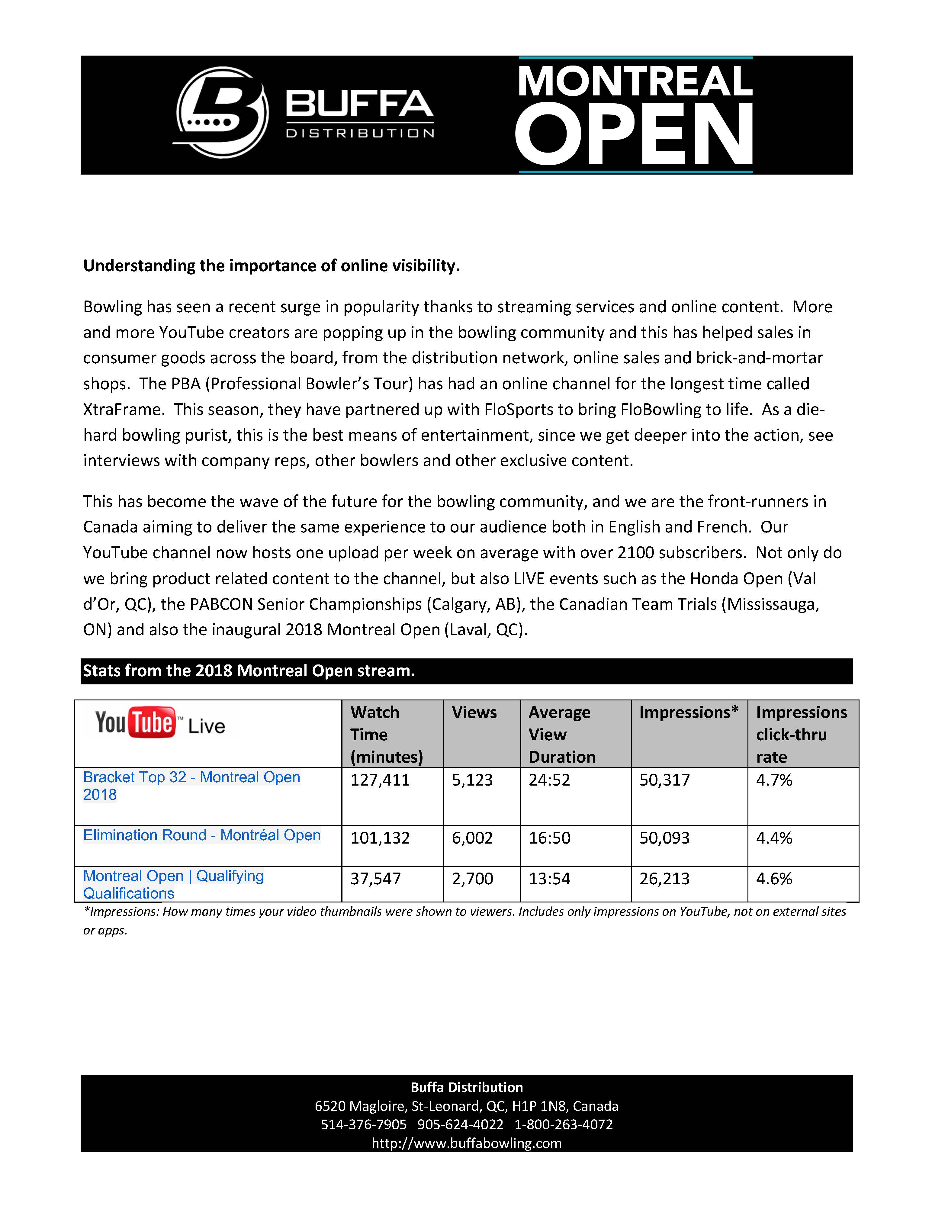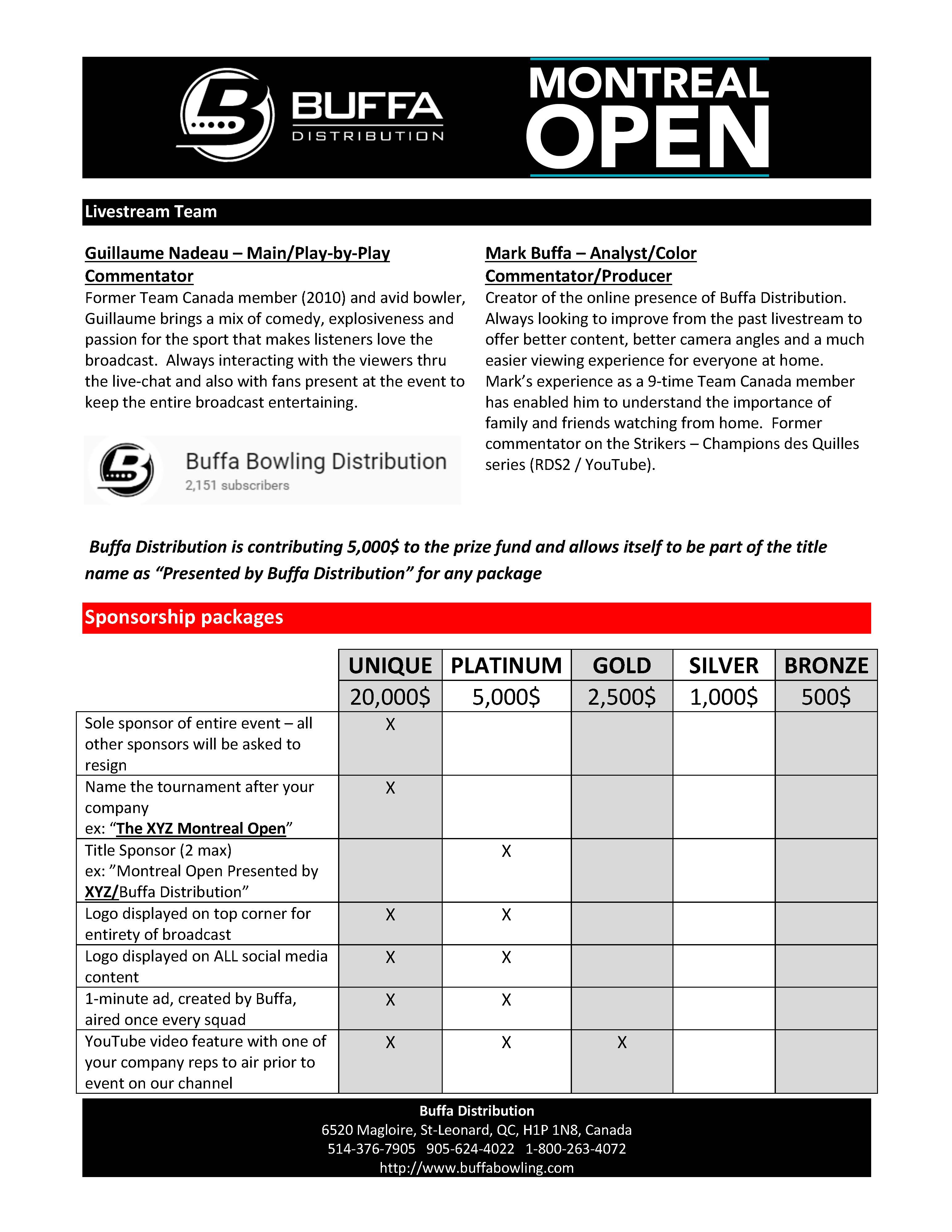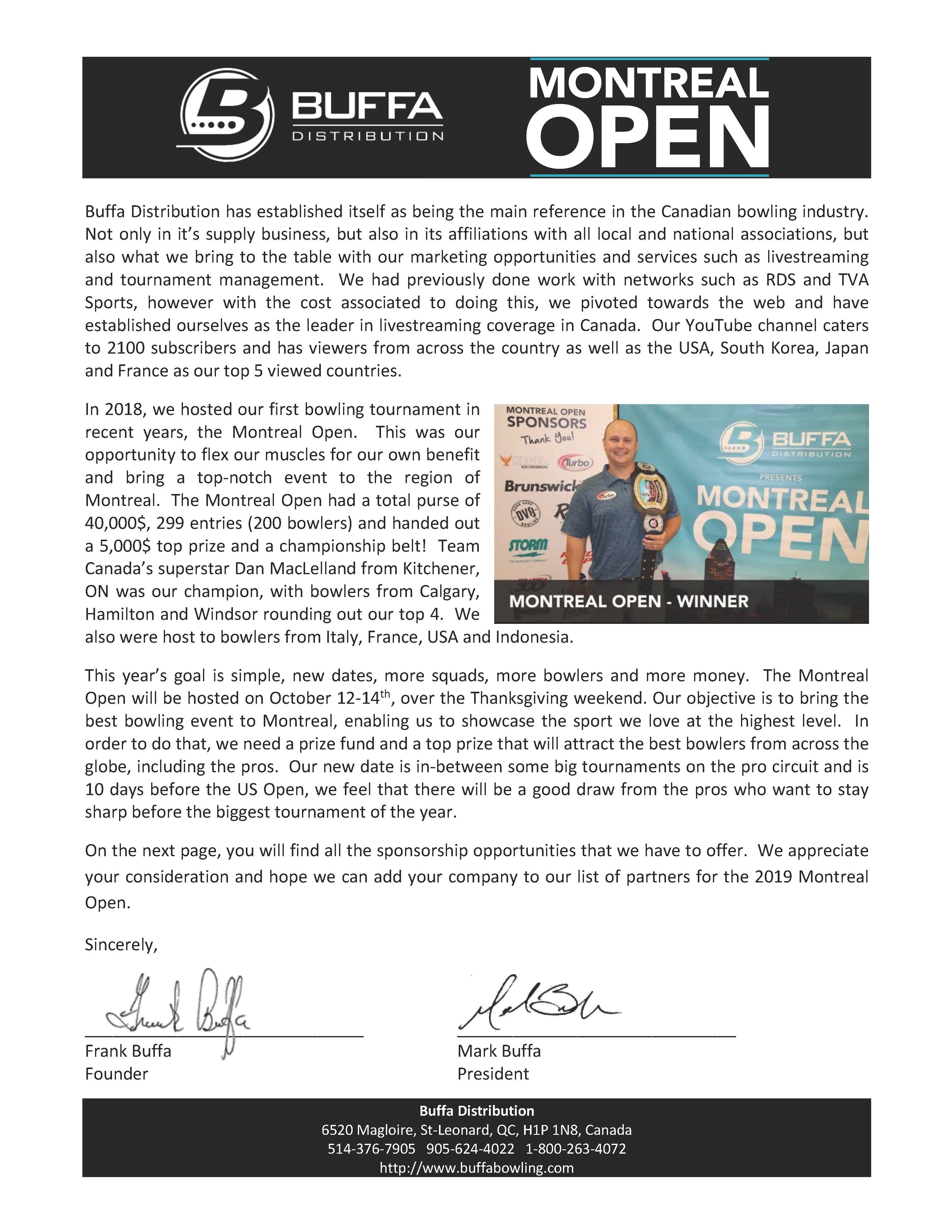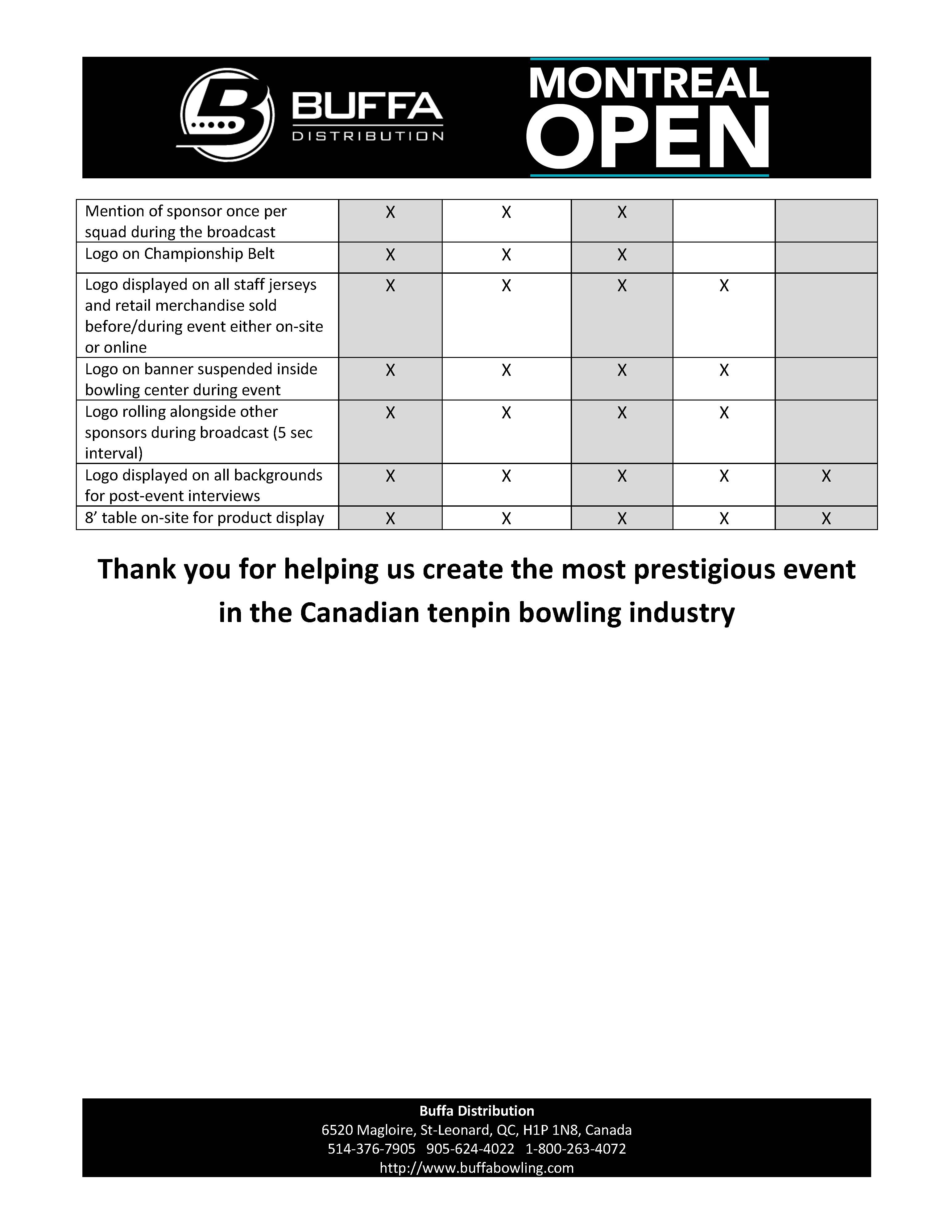 The 2019 Montreal Open would not be possible without our sponsors. We would like to take this opportunity to thank all of the people who are helping us make this event possible. At Buffa Distribution, we work hard to make sure that our sport is getting the attention it deserves. Here is our sponsors’ list: