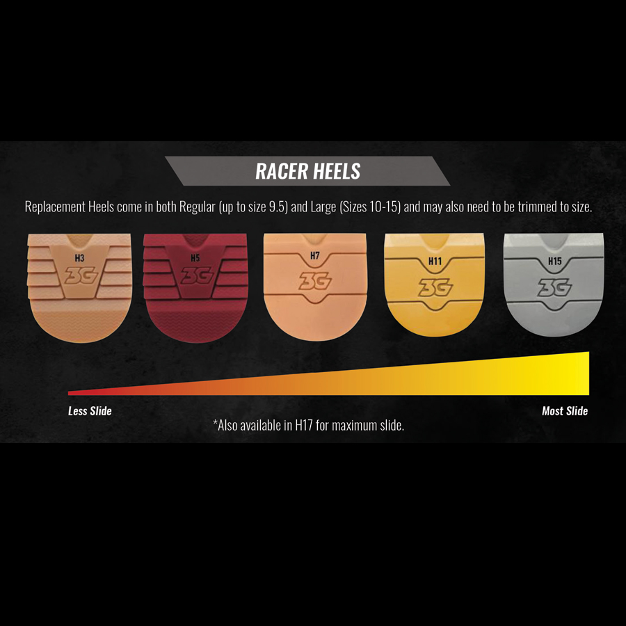 Replacement Heels come in both Regular (up to size 9.5) and Large (Sizes 10-15) and may also need to be trimmed to size. Also available in H17 for maximum slide.