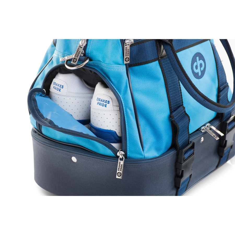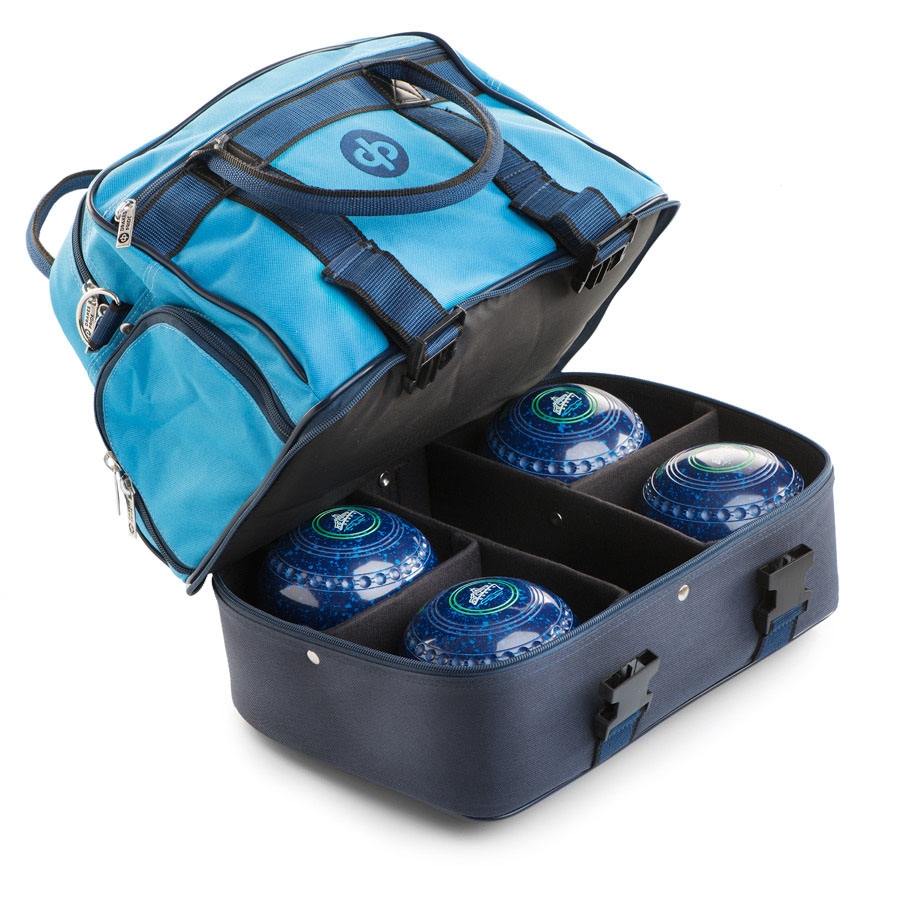 A durable nylon bag with zipped base section to hold four bowls. The zipped upper section has plenty of room for additional accessories, whilst the additional outer pocket on the front is ideal for mobile phones etc. A zipped side opening also enables you to keep your bowling shoes in a completely separate shoe compartment away from all the other contents.