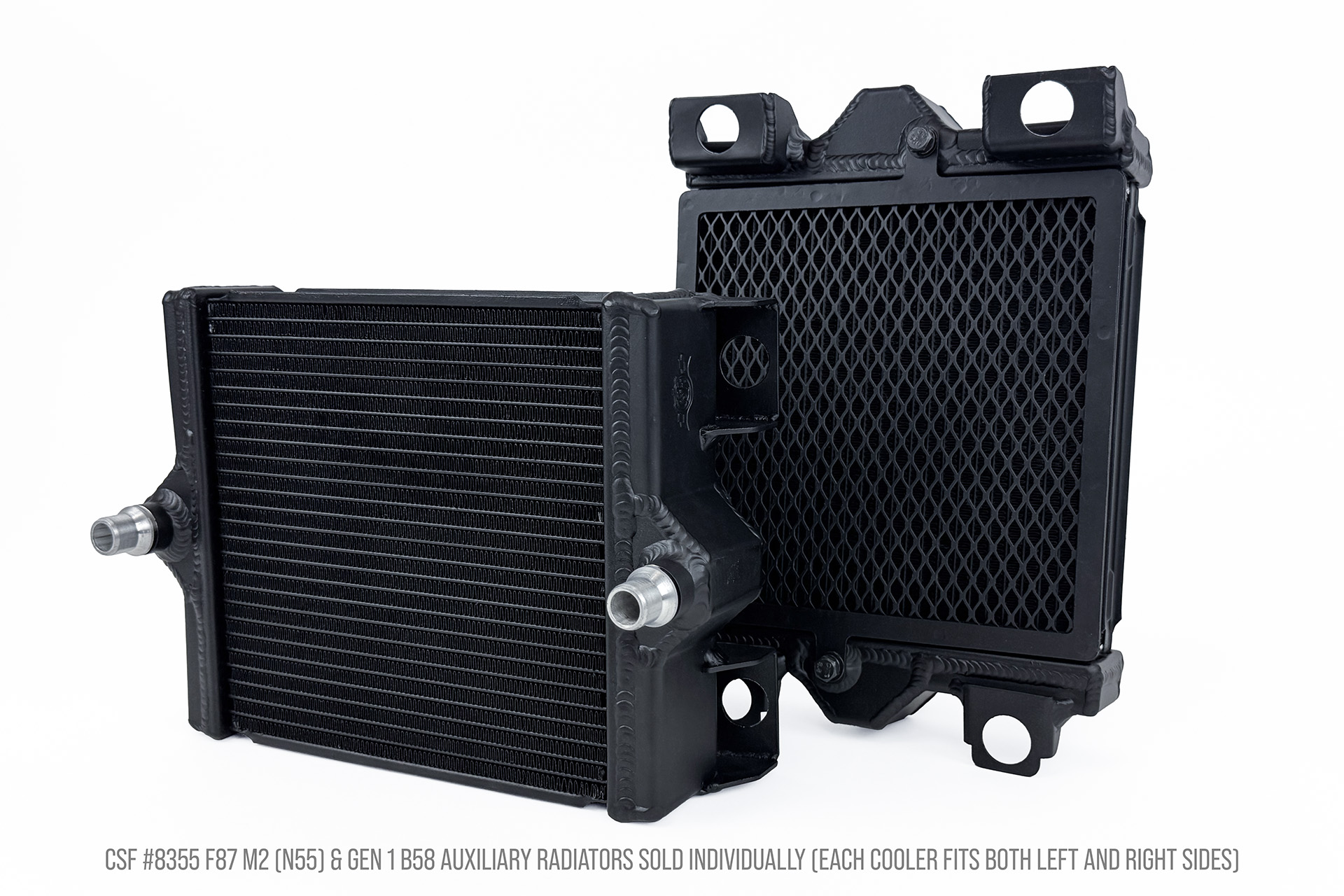 The new CSF Auxiliary Radiators are a great addition to the popular F87 (N55) & F3X/F2X Cooling Suites. Like the other cooling systems on these BMWs, the aux rads do a pretty good job in stock form. However, once you start adding a lot of power and pushing the car in aggressive driving conditions, the factory systems start to show its limitations. As more and more owners keep pushing the limits of their M2s and Gen 1 B58s, CSF is here to keep them cool.