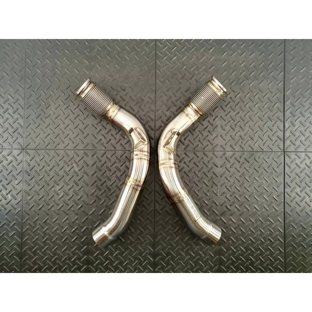 Transform your BMW M5 F90 and BMW M8 F91 F92 F93 equipped with the 4.4 L S63 twin-turbocharged V8 with Redstar performance exhaust secondary cat delete. This lower secondary slip-on style downpipe only replaces the lower secondary pipes by removing the secondary catalytic converters for a cleaner, freer-flowing path. It is completely bolt-on and is designed not to trigger a check engine light.