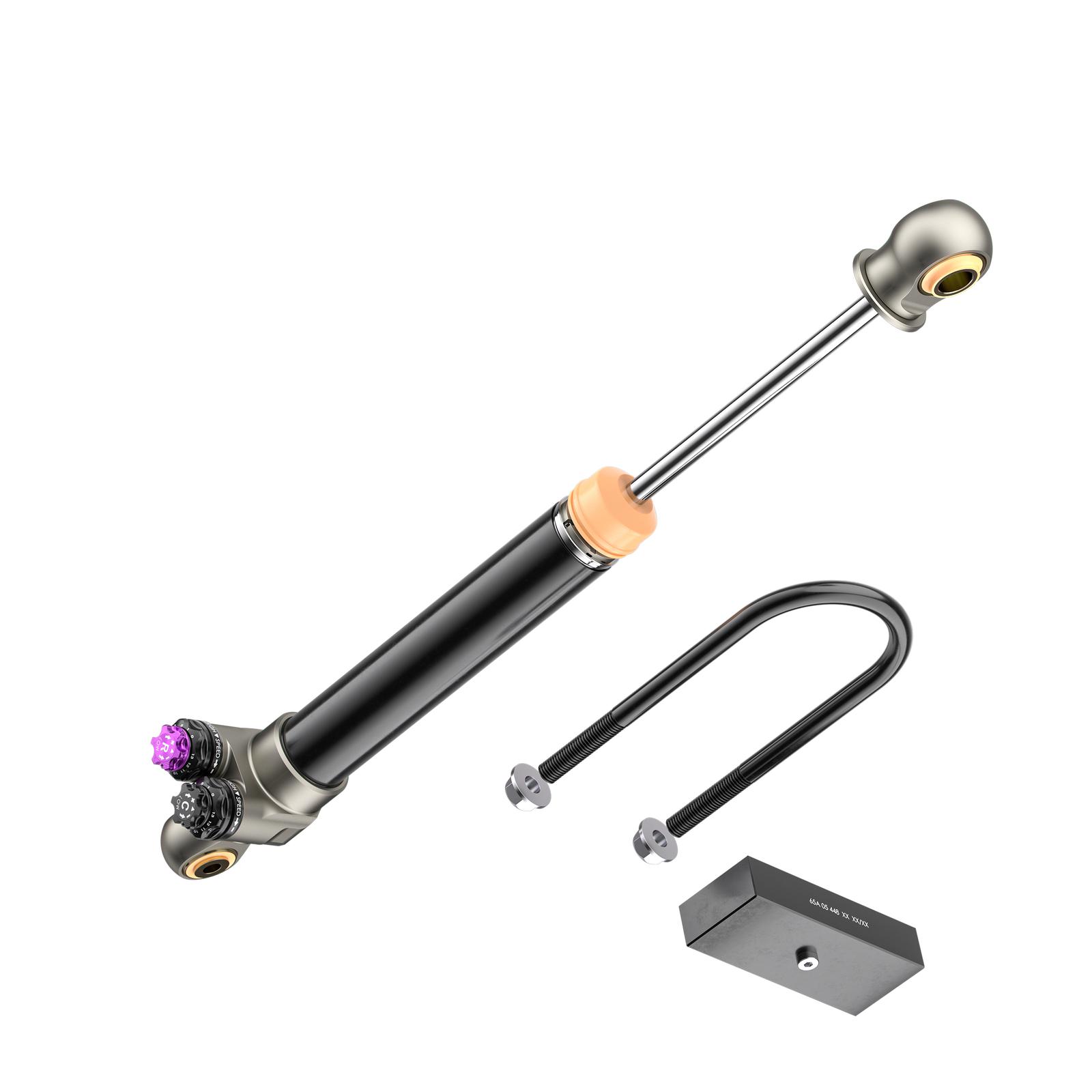 The innovative design with an internal reservoir eliminates the need for an external piggyback. The compression, rebound, and blow-off valves used in the Reiger SP-RC 3.0 and the hydraulic compression and rebound stops are based on components proven in the Dakar Rally, as is the fact that the damper has a parts certificate. The damper allows a ride height of up to 60 millimeters, depending on the vehicle model.