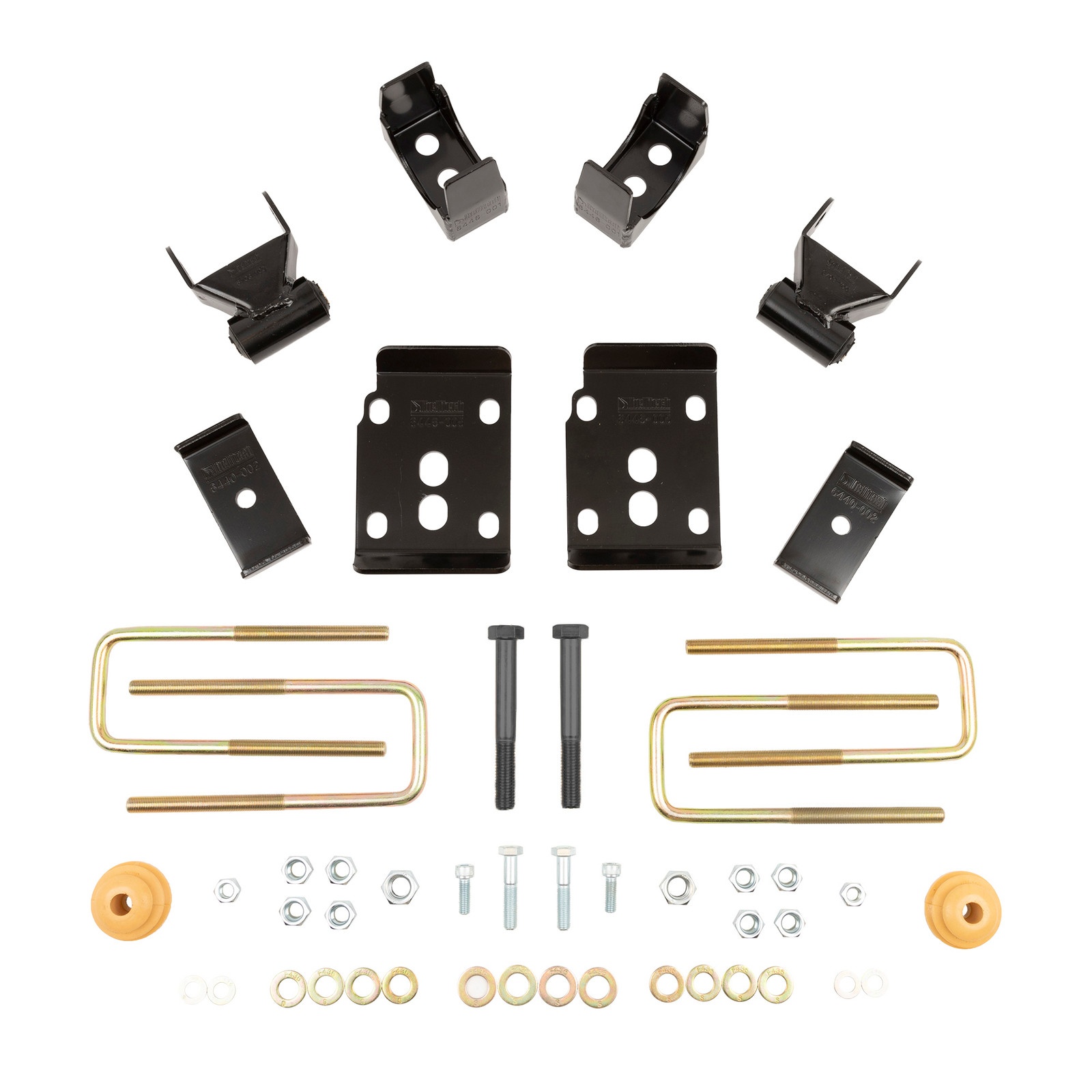 The rear set-up showcases Belltech Street Performance shocks that are impeccably tuned for your Ford. They feature large 2.2” (55mm) damper bodies and use 35mm independent rebound and compression valves, to experience more exact, luxurious damping. Like the strut dampers, our shocks are made with a low-friction design and use a rust-preventative coating to increase their lifespans. To achieve -4.5” in lowering, Belltech includes an easy-to-install flip kit containing high-quality hardware and durable components. It seamlessly repositions your axle without interfering with any OE parts.