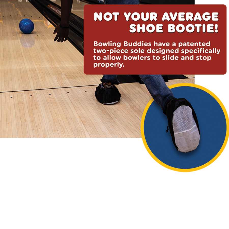 Bowling Buddies Shoe Covers are fully functional, disposable shoe covers that are designed for a single session of bowling and are intended as an alternative to the traditional rental shoe. They are also specifically designed to enhance the customer’s bowling experience by giving them the comfort of bowling in their own shoes as well as providing exceptional front slide and rear friction for a perfect game.