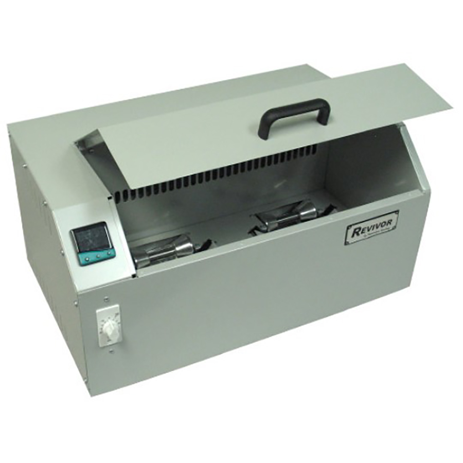 Our Revivor Oil Extraction Device allows you to process either one or two balls at a time. It removes absorbed lane oil by applying digitally controlled heat in a even and consistent pattern. As the warm air is circulated throughout the chamber the ball(s) continually roll over sorbent pads, removing any oil as it is brought to the ball's surface. Our process is effective enough to bring a ball very close to "out-of-the-box" condition, doing so in less than one hour. It is not messy for the operator, the shop, nor the environment.