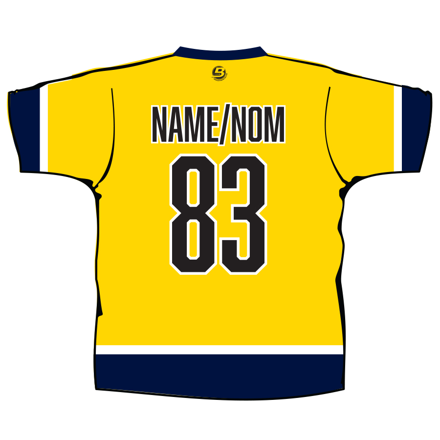Your name will appear in CAPS on the back of the shirt. / Votre nom apparaîtra en MAJUSCULES au dos du chandail.