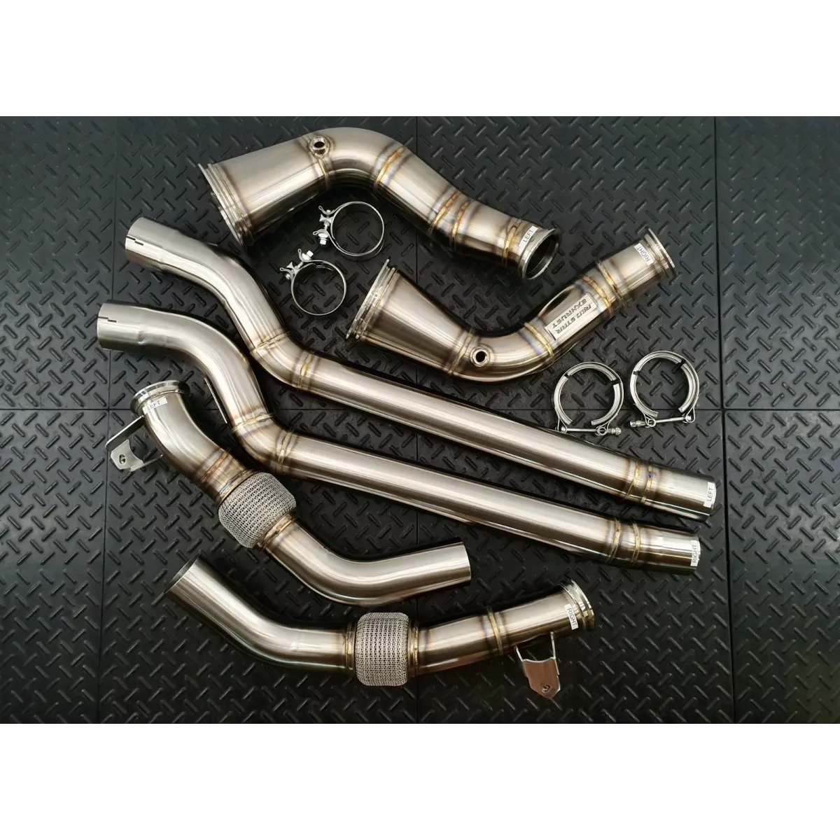 - Downpipe to resonator delete interface available with OEM 3-bolt flange with gaskets or an upgraded V-band connection that allows a larger diameter joint