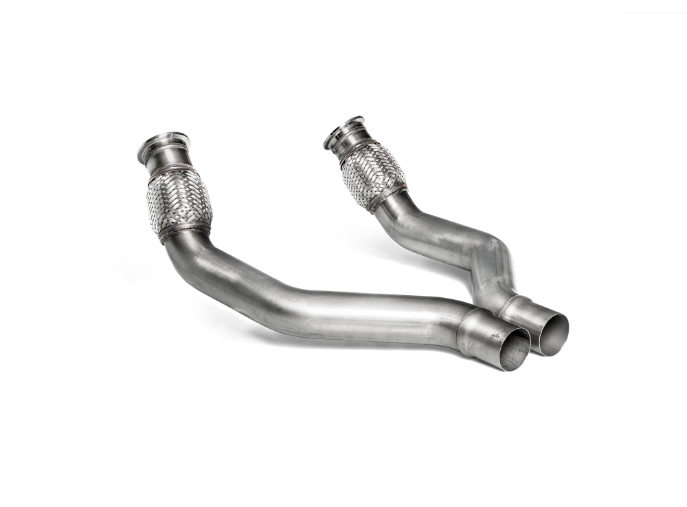Stainless steel front link pipe that has to be used if the car is equiped with Akrapovic aftermarket evolution line exhaust system.
