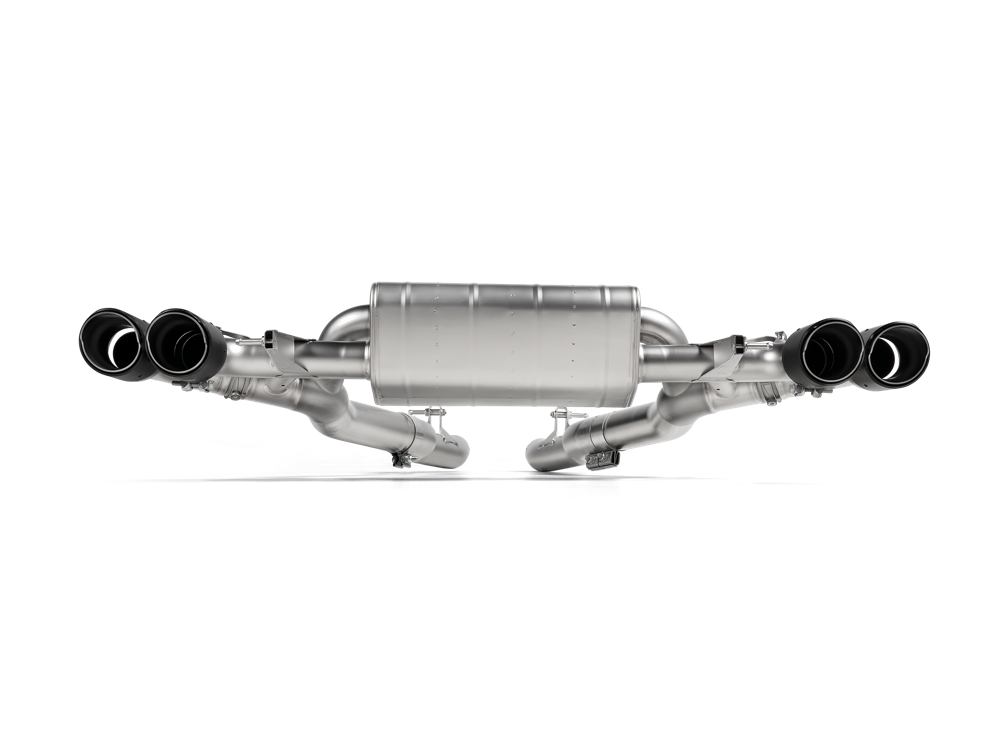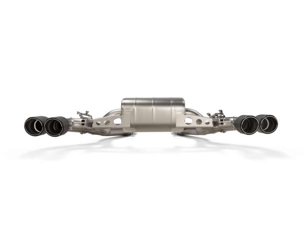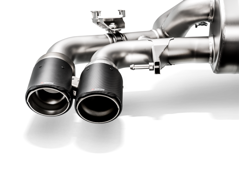 Built from high-grade lightweight titanium – with some parts cast in Akrapovic’s own foundry – this system will reduce exhaust system's weight. Developed to deliver both power and torque gains throughout the range with most gain in lower rpm will improve responsiveness and drivability. The system delivers distinctly different sound from the stock system, most noticeable at shifting, backfiring and accelerating. The carbon-fibre tailpipes have been perfectly crafted and designed to fit beautifully within the optional carbon-fibre diffuser. Optional carbon-fibre mirror caps are also available to further enhance the car's appearance.