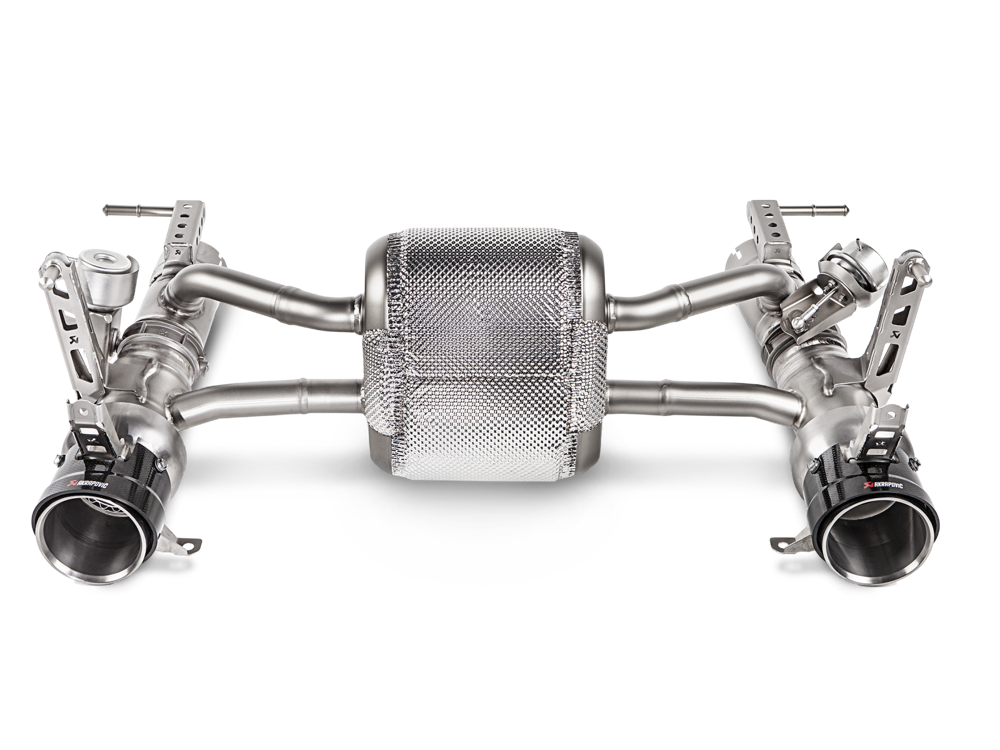 Featuring 200 CPSI high-flow high-quality metal cats and larger insulated tubes. The set increases performance due to less restricted flow through the cats and lowered backpressure, resulting in increased power. Sound levels will also be enhanced, with an increase of 10 dB in external sound performance, emphasizing the character of the engine to provide more of the traditional V8 flat crank feel. When fitting the optional link pipe set with catalytic converters, remapping the car’s ECU is necessary.