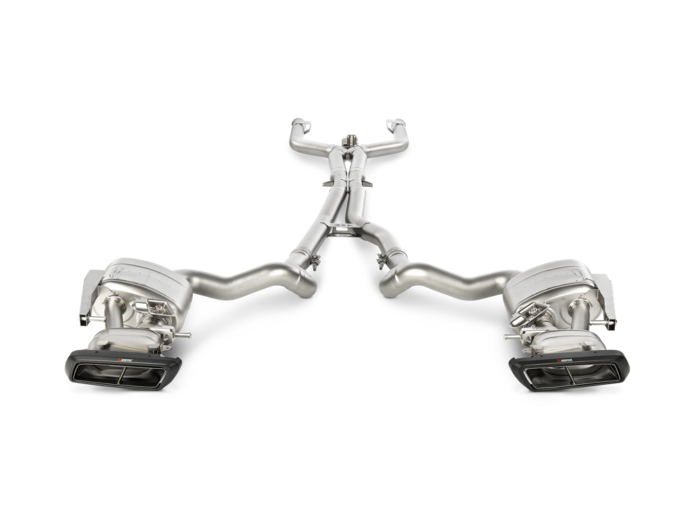 Perfectly formed using specially developed ultra-lightweight titanium alloys and finished with hand-crafted matte carbon-fibre tailpipes. The system replaces both the base and performance exhausts fitted to the Mercedes-AMG C 63 and C 63 S. This stunning system includes parts cast in the company’s in-house foundry, featuring an active X connection and an additional pair of exhaust valves behind the rear mufflers, designed to provide optimal control of the exhaust sound for the best aural enjoyment. With two defined sound characteristics and three different driving sound settings, the system has been perfectly tuned to deliver the very best sound in all modes. The optional Akrapovic Sound Kit controller allows the user to choose the exhaust tone regardless of the chosen mode of the vehicle and is a recommended upgrade when replacing the base exhaust system. An increase in performance and torque and a huge weight savings in excess of 45% makes this a very serious performance upgrade. Because it is ECE type approved with no need to remap the ECU or add any other parts, it is just a simple plug-and-play installation. The exquisite Akrapovic Evolution Line (Titanium) exhaust system adds performance and style, along with an amazing soundtrack.