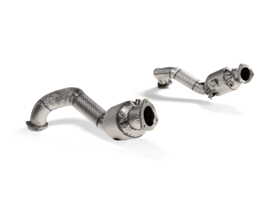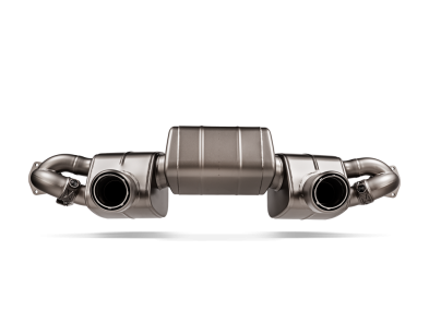 Using race-proven solutions, this high-grade titanium header set features a special manifold runner crossover part on each side. This technological innovation is a masterpiece of engineering and enhances the performance of the complete exhaust in the mid range. Several parts are cast in the in-house foundry, including the three-in-one collectors designed for smooth gas flow. The weight is 5 kg (51.9%) less than the standard system and, when installed with the Slip-On Race Line (Titanium) and Link Pipe Set (Titanium), power and torque increase by 26 kW (35.4 hp) at 4,900 rpm and by 50.9 Nm at 4,900 rpm when tested on the Akrapovic dyno against a Porsche 718 Cayman GT4 RS with a standard stock system. It provides a true racing sound, full of character with a distinct note during gear shifts. With the installation, remapping is mandatory, and this track-oriented part and full system have been developed for use on closed-course competition circuits only.