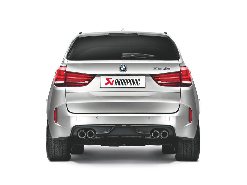 A BMW X5 M / X6 M fitted with the Akrapovic exhaust system can be further enhanced with an optional hand-crafted carbon fibre rear diffuser. Designed exclusively for the car, this stunning handcrafted diffuser takes the look of the rear of the vehicle to a whole new level and shows off the Akrapovic Slip-On line system’s tailpipes to their full extent.