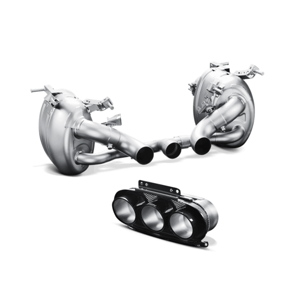 The Ferrari 458 Italia is one of the most impressive road-going cars ever designed. With its lightweight construction, technical innovations, and 570 hp 4.5-liter engine, it’s a memorable driving experience. Add our titanium Slip-On performance exhaust system for even more power, reduced weight, and an enhanced sporty sound. Our Slip-On features dualmode exhaust valves and a triple exit system that delivers crisp but subdued sound at low rpm, but at higher rpm it fully unleashes an incredible deep sporty sound from the F1-inspired, high-revving V8. Complete the look with a set of three exquisite carbon fibre tailpipes. Further tuning opportunities and even more aggressive sound are available with our titanium link pipe set with high-flow catalytic converters.