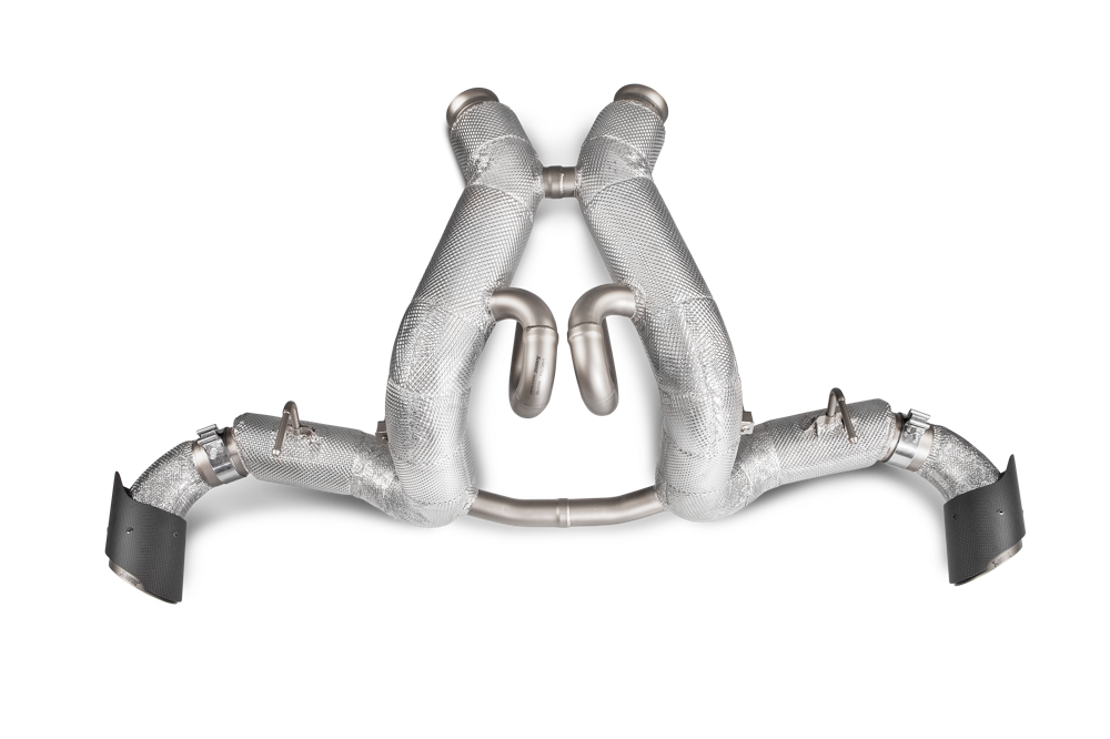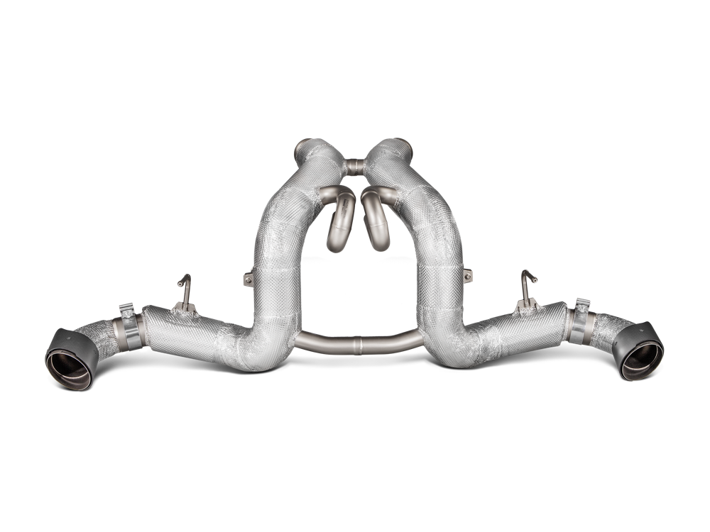 An exquisite car deserves an exquisite exhaust, and the Slip-On Line (Titanium) for the McLaren is certainly that. It is made of special, lightweight, durable, and heat-resistant titanium alloys, all perfectly formed and shaped to fit the car. Bigger tubes deliver optimised gas flow, and the use of ultra-lightweight materials will significantly reduce the vehicle’s weight and enhance its handling. A distinctive coating offers an enhanced appearance, and the parts most exposed to heat feature special insulation for protection. With two flawlessly styled and finished handmade carbon-fibre tailpipes, which beautifully complement the titanium pipes, this exhaust is a work of art. It comes complete with a soundtrack that perfectly matches the car’s performance, ideally tuned to produce a unique sound colour and the celebrated Akrapovic signature sound.