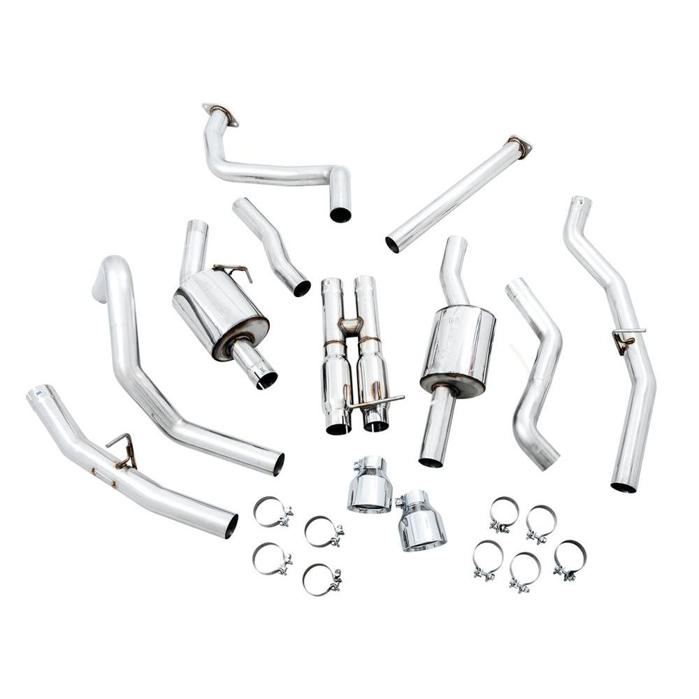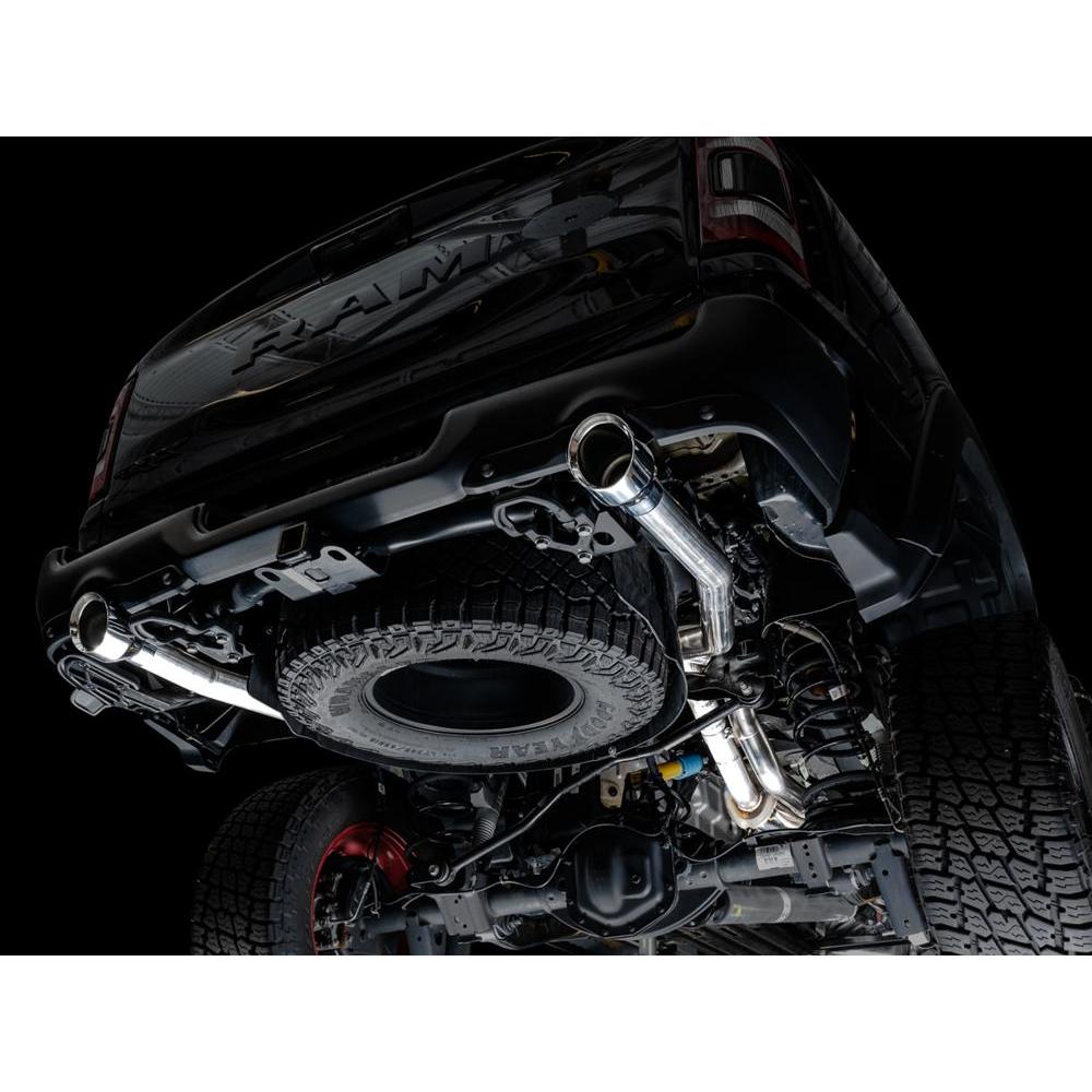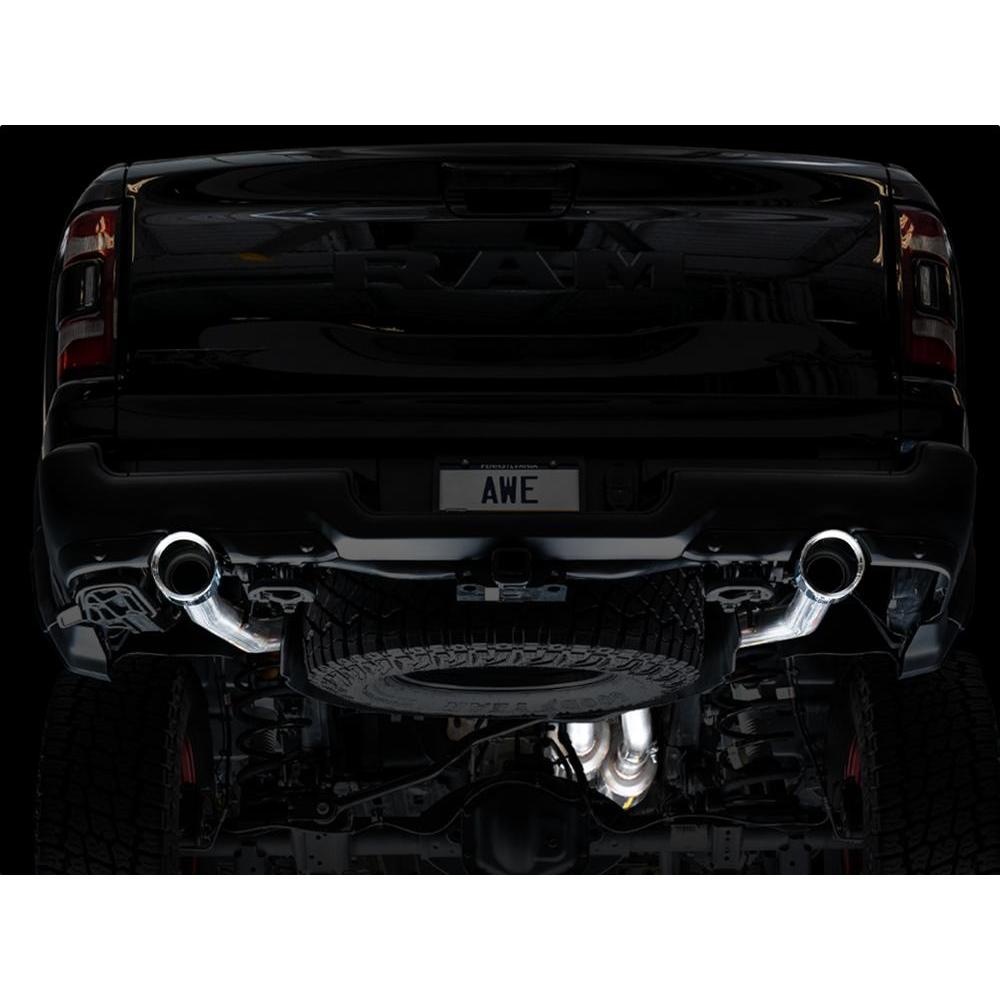 The 0FG is a dual 3” T304L stainless steel Cat Back configuration featuring a bespoke resonated H-pipe and AWE’s patented drone-canceling 180 Technology®. Together, combined with precision fitment, class-leading rigidity, and signature 5” slash-cut tips, you're looking at the Best Sounding Exhaust on the Planet for the RAM TRX. American-sourced T304L stainless steel with a wall thickness of .065” runs smoothly from front to back, connecting right after the factory emissions equipment. A resonated H-pipe tailored specifically for the 6.2L-packed TRX is met shortly after to provide an aggressive and rich muscle tone with minimal rasp. You're looking at the Chrome Silver tips version of the exhaust, featuring aggressive 5”, double-walled slash-cut tips, and stamped AWE logos to let everyone know what team you're on. The TRX system by AWE is one of the most significant upgrades available for your TRX. Let's rumble.