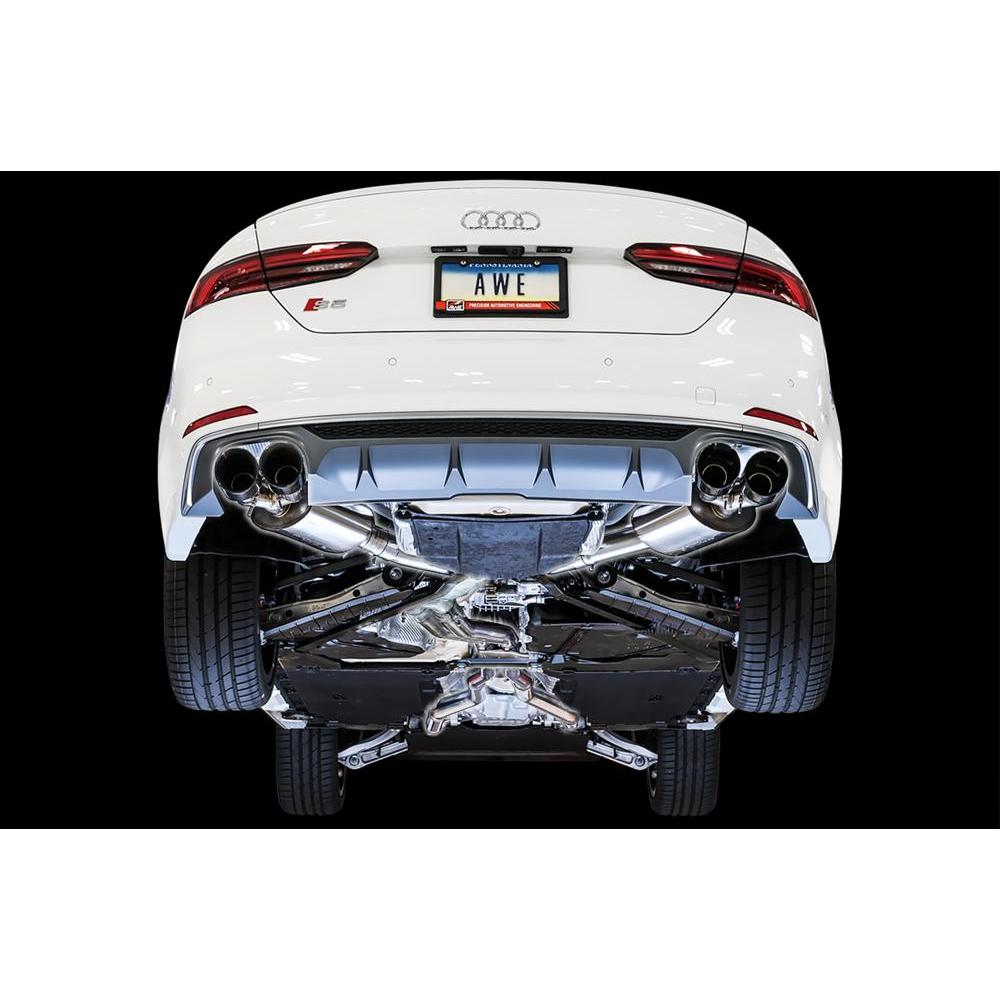 Meet the perfected B9 S5 soundtrack. Signature AWE howl, delivered. The Touring Edition is the sophisticated member of the B9 S5 exhaust family. The Touring Edition Exhaust removes the factory valving and replaces it with AWE’s 180 Technology® drone-cancelling resonators (and electronic valve simulators). This solution provides for a perfect, signature AWE experience: civil within the cabin while cruising, yet all the pops and burbles during acceleration and downshifts.