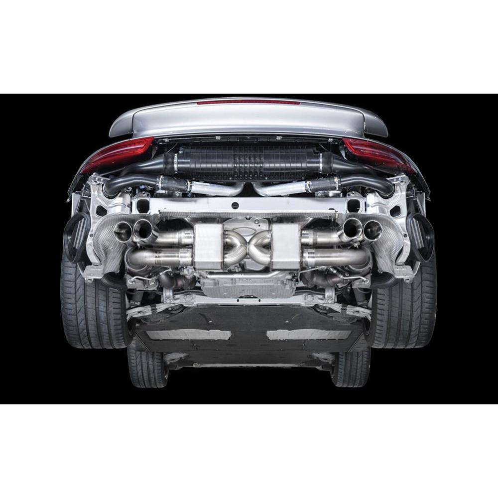 Producing an exhaust system that is both aggressive at full throttle yet civil enough for Bluetooth calls is no small endeavor. Using the AWE 200 Cell HJS HD high-flow catalysts, AWE sound engineers carefully studied the tones of the multiple prototype 991 TT systems at various RPMs, and meticulously engineered a bespoke 991 TT solution (as opposed to a repurposed 997.2TT system) to combat frequencies that are not appropriate for a supercar of this caliber – retaining and building upon only the perfect notes. All while producing an impressive 29+ horsepower at the crank along with the AWE No CEL Guarantee.Using 3.0" diameter T304 stainless steel tubing and an H-pipe design, the AWE muffler section routes exhaust gases through two proprietary and handcrafted mufflers to create the AWE signature sound. The exhaust is available with AWE Diamond Black tips, Chrome Silver tips, or OE tips to retain the factory look. This version flaunts classic Chrome Silver quad tips. This is the only 991.2 Turbo and Turbo S exhaust that’s fit for the AWE badge.Important note: Please note that due to the use of high flow catalytic converters this exhaust is legal for racing use only.