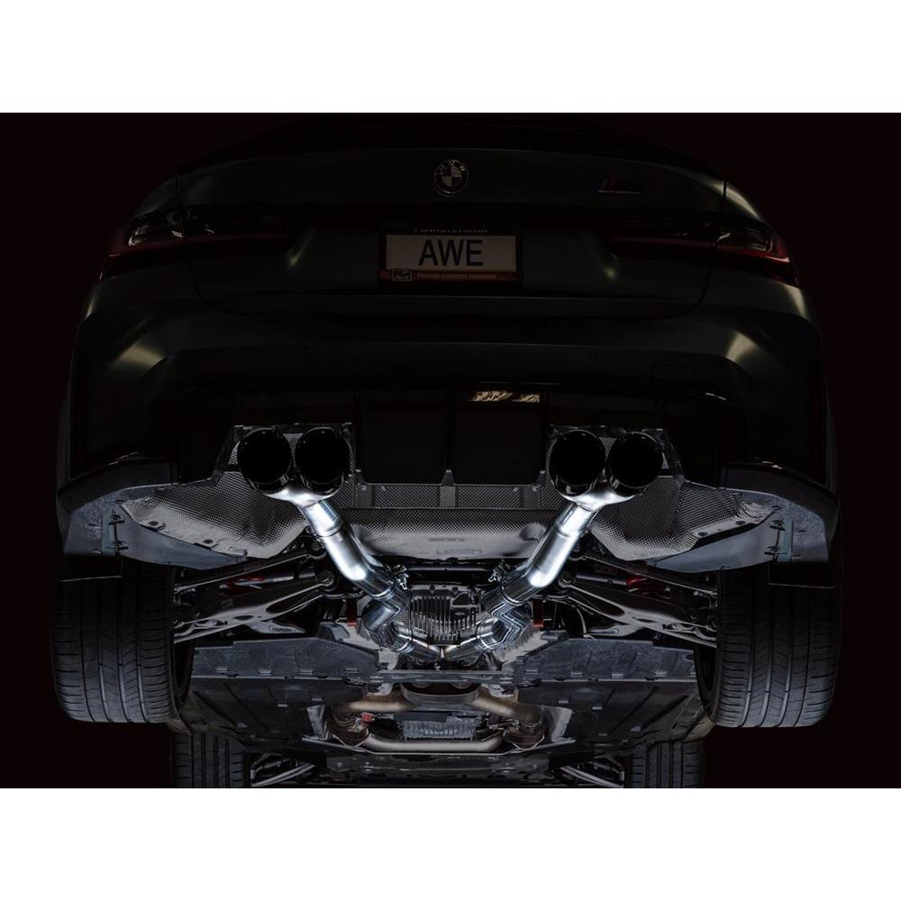 AWE’s Track Edition takes all of the precision engineering and performance of its SwitchPath™ counterpart, minus the valved muffler in the rear. The result is a constant “valve open” mode, at an affordable price with additional weight savings. If you’re craving rich and rowdy tones at all times, and a hefty 22 lb weight savings (with AWE mid-pipes), this is your dose of steel. The Track Edition Exhaust, also 50 state legal like its SwitchPath™ sibling, comes complete with AWE valve simulators to accommodate your factory exhaust valve motors. Happy ECU, happy life. And when it comes to showing off the party out back, the system comes with quad 4.5” double-walled, slash-cut tips available in chrome silver or diamond black. The exhaust features inlet adapters to mate to the factory mid section. When pairing AWE Mid-Pipes to the SwitchPath™ or Track Edition Exhausts, the aforementioned adapters are not needed. Due to varying cut points, AWE Exhausts are not guaranteed to mate with another manufacturer’s mid pipes. Note: This version is known to get rowdy, and may be too much for many. For that reason, this particular version cannot be returned due to sound preference. Prepare yourself (Sport+ mode can be pretty raucous)!