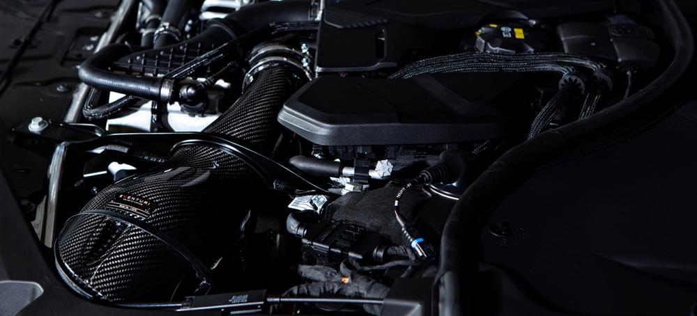 The F92 M8 Eventuri system uses our Patented Carbon Fibre Housings with our Gen 2 bespoke filters, which provide an aerodynamically efficient airflow path from the filter to the turbos. Not just another cone filter with a heat shield but a unique design which invokes the Venturi affect and maintains laminar flow conditions to reduce the drag on the turbo.