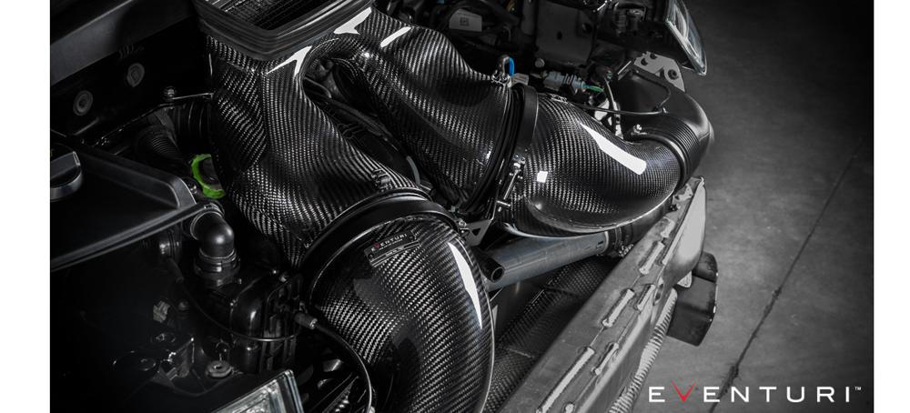 The 911 Turbo Eventuri system uses our Patented Carbon Fibre Housings with our Gen 2 bespoke filters, which provide an aerodynamically efficient airflow path from the filter to the turbos. Not just another cone filter with a heat shield but a unique design which invokes the Venturi affect and maintains laminar flow conditions to reduce the drag on the turbo.