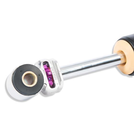 You don’t need any adjusting tools because of the patented compression adjuster at the lower end of the stainless steel housing. The adjustable compression damping with its twelve exact clicks allows you to manually influence body roll, without having to change the spring rate which optimally matches the rebound.