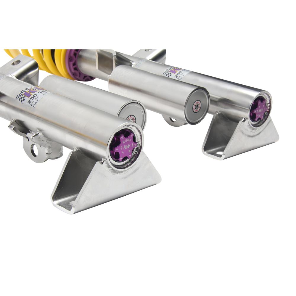 Similar to our racing coilovers from the KW Racing program, the KW V3 can be adjusted independently in compression and rebound damping. This individual adjustment possibility is much appreciated by sports car manufacturers, tuners and drivers worldwide.