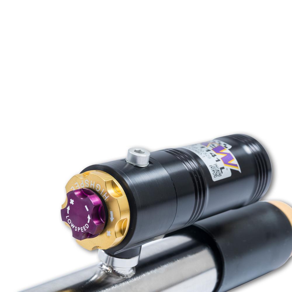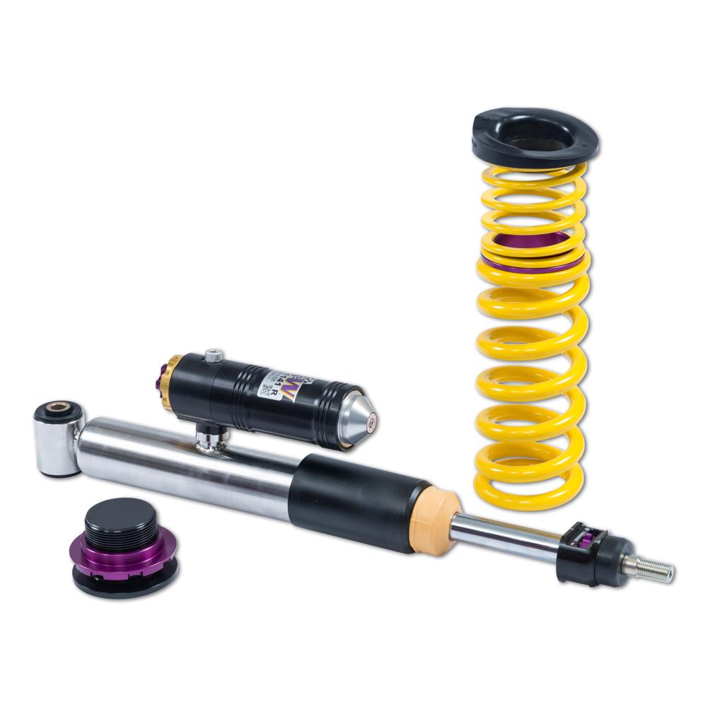 With the KW V4 coilover kit with its coilover struts made of stainless steel, you will give your super sports car the necessary reserves to further increase the driving dynamics. The three way adjustable high-performance shock absorbers with their independent adjustment of the rebound and low speed as well as high speed compression damping are based on the successful racing technology of the multiple overall winners of the ADAC Zurich 24h Nürburgring and depending on the vehicle-specific design, they also feature aluminum top mounts. The KW V4 is developed exclusively for selected high-performance vehicles, which can be driven more safely at the driving dynamics limit with our KW suspension technology.