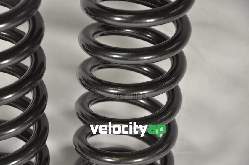 VelocityAP springs use exclusively high quality, high stress X5K Spring Steel. Although considerably more expensive than regular steel, this new generation steel allows us to further improve upon the original Aston Martin spring design by reducing the amount of steel required in a spring. VelocityAP springs are therefore substantially lighter (by approximately 30%) and reduce the solid height therefore increasing travel. X5K Spring Steel is used in almost all top levels of Motorsport, giving a hugely successful endorsement of its characteristics & proven durability.