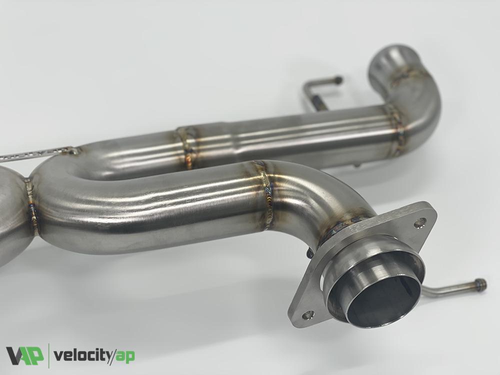 A minimalist approach for the DB9/DBS/Virage/Vanquish Exhaust system from Velocity Automotive Performance! Our X-Pipe design accentuates the high-pitched top end of the RPM range for the smoothest and most exotic sounding V12 setup on the market.