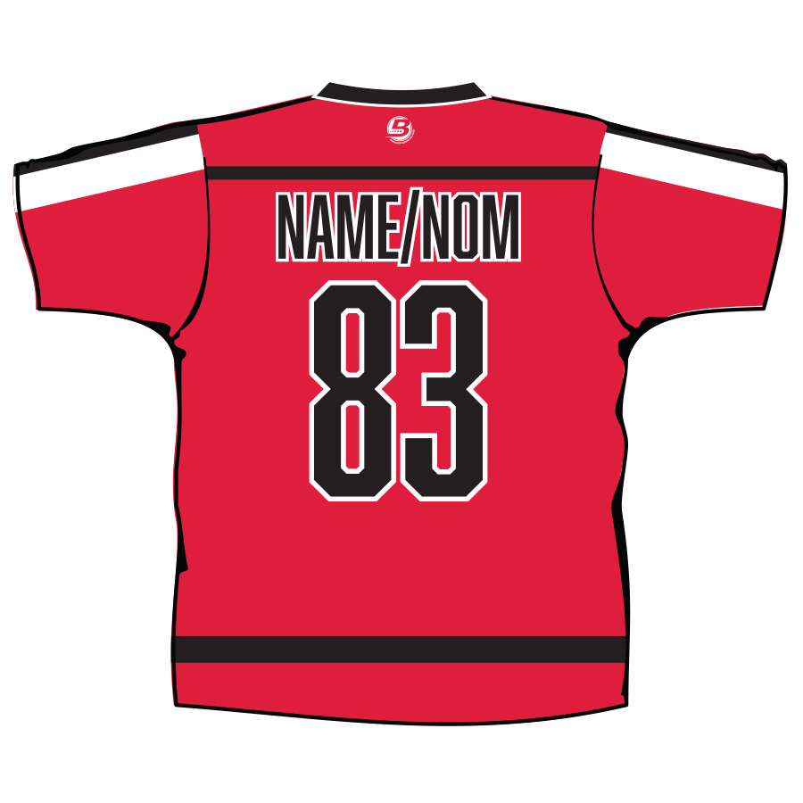 Your name will appear in CAPS on the back of the shirt. / Votre nom apparaîtra en MAJUSCULES au dos du chandail.