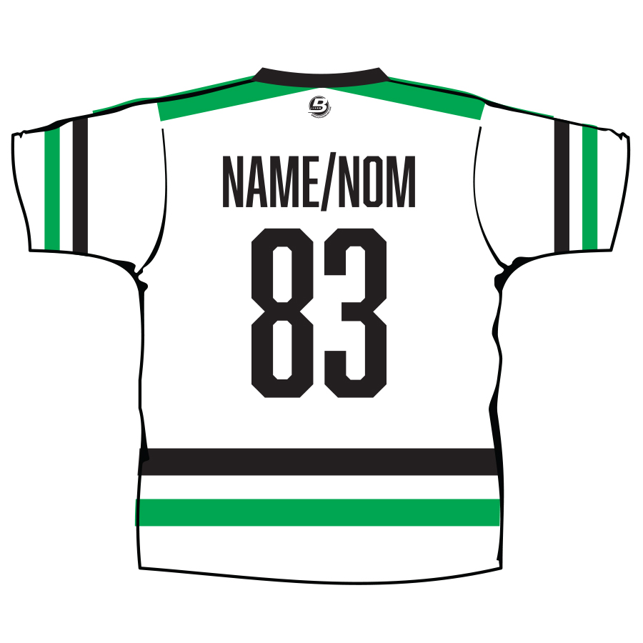 Your name will appear in CAPS on the back of the shirt. / Votre nom apparaîtra en MAJUSCULES au dos du chandail.