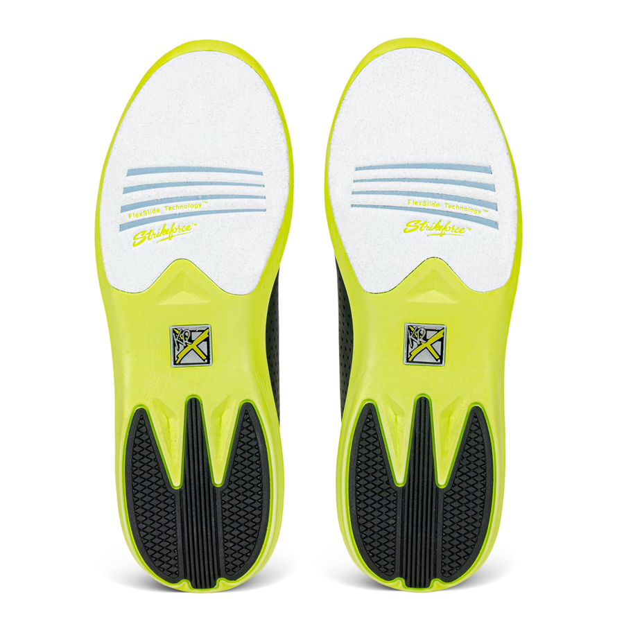 The KR Strikeforce Arrow FT comes with Fast Twist Freelock Dial Lacing System located on the tongue.  Bowling shoe features an all-new soft, lightweight, breathable microfiber upper that has never been seen before on bowling shoes. The CMEVA outsole with the co-molded rubber heel ensures a comfortable fit and improved durability. The silky smooth sock liner combined with the higher stack height guarantees ultimate comfort. Finally, the lace-up closure with our Komfort-Fit construction makes it easy to get a secure fit on your foot.  Arrow has a number eight white microfiber slide pad on both shoes with FlexSlide Technology.