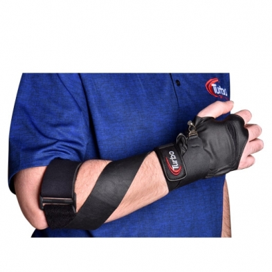 The Wrist Restrictor is an easy-to-use training aid that can be worn to restrict or enhance wrist rotation during the bowling release. Topping the ball, or over-rotating, at the point of release drastically affects the movement of the ball down lane. The Wrist Restrictor will help sync wrist and elbow through the release to correct over rotation. A backup ball release is a clockwise (RH) or counter clockwise (LH) rotation of the wrist which is opposite of a traditional hook. The Wrist Restrictor helps sync the movement of elbow and wrist limiting rotation and correcting back up ball release.  Product includes 3 pcs: Glove, Forearm Band and Strap.
