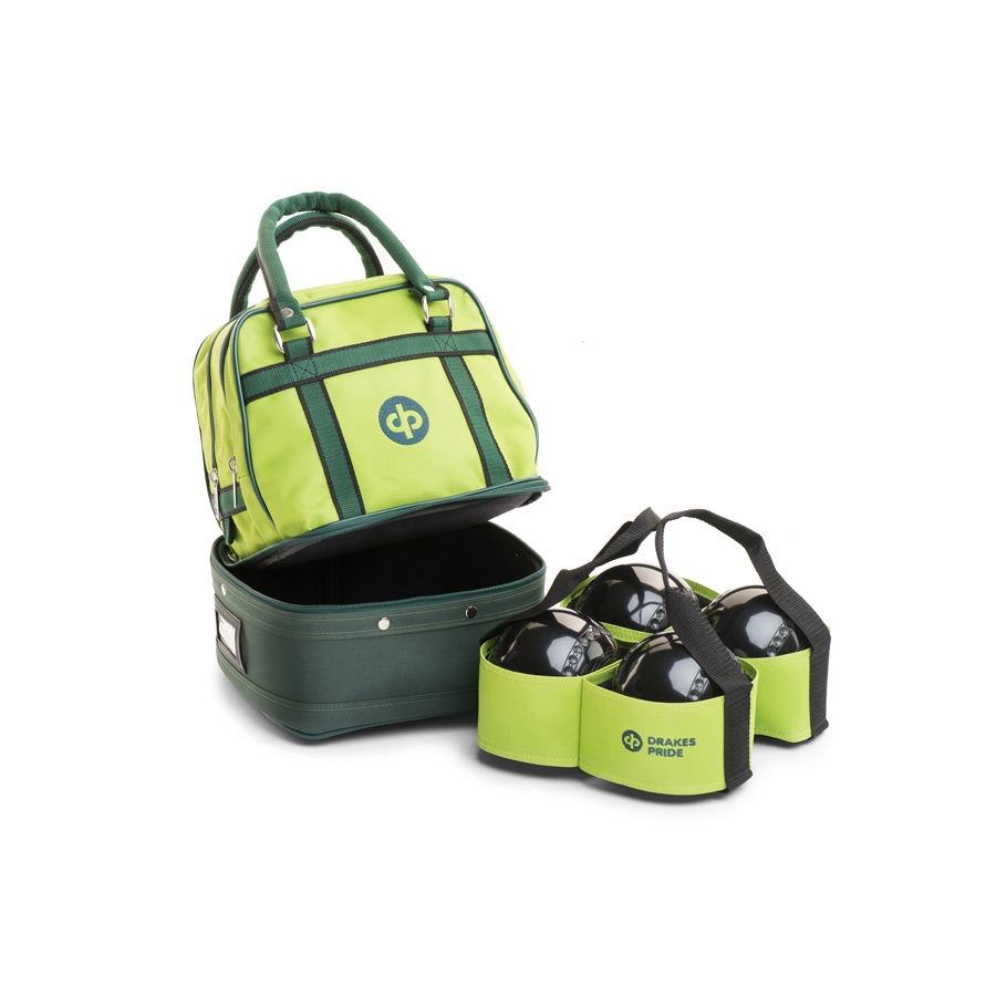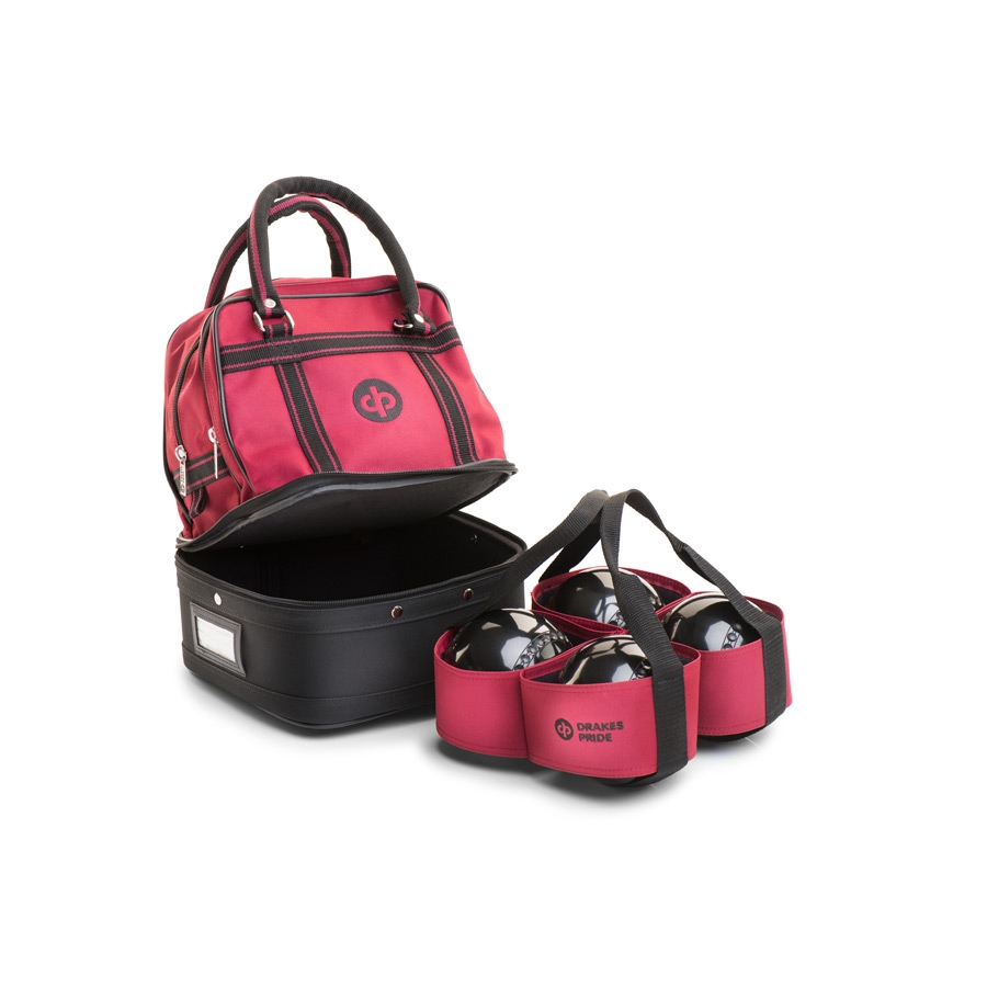 Sac en nylon durable avec section inférieur zippée pour tenir quatre boules avec le porte-boule intégré. La partie supérieur comporte deux compartiments zippés donnant beaucoup d'espace pour les accessoires supplémentaire, tandis que la poche extérieure supplémentaire sur le devant est idéal pour les téléphone portables, etc. Bien que compact et facile à manipuler ce sac est trop petit pour contenir les souliers. Pour un sac qui peux contenir les souliers vous aurez de besoin de notre sac Midi ou Maxi.