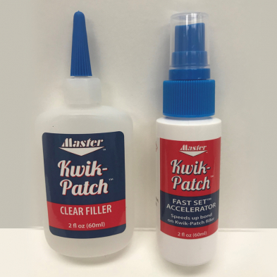 Distribuez Master Kwik-Patch sur la zone endommagée, puis vaporisez avec l'accélérateur. S'installe instantanément et est prêt pour la finition habituelle. Le kit comprend à la fois le Clear Filler et le Accelerator.