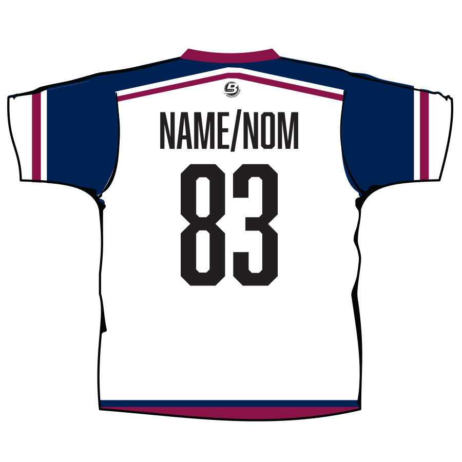 Your name will appear in CAPS on the back of the shirt. / Votre nom apparaîtra en MAJUSCULES au dos du chandail.