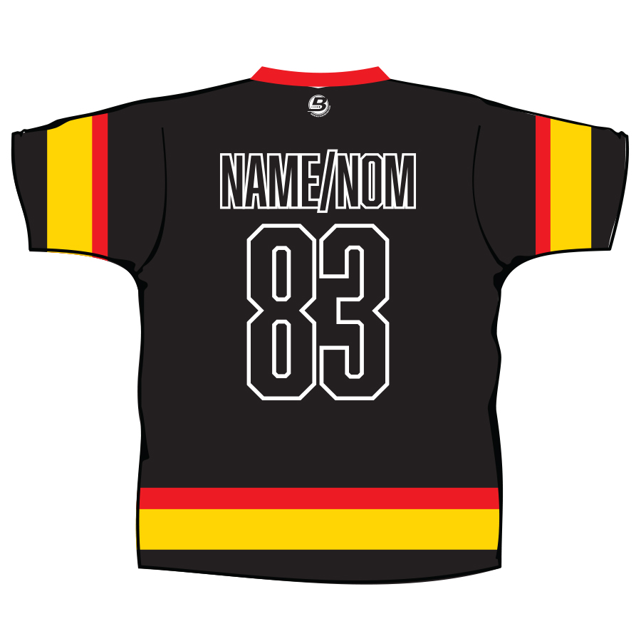 Your name will appear in CAPS on the back of the shirt. / Votre nom apparaîtra en MAJUSCULES au dos du chandail.
