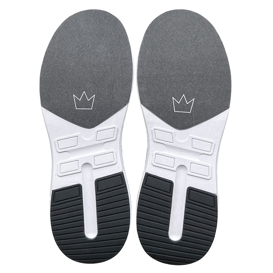 • Semelles coulissantes en microfibre Pure Slide grises sur les deux chaussures.