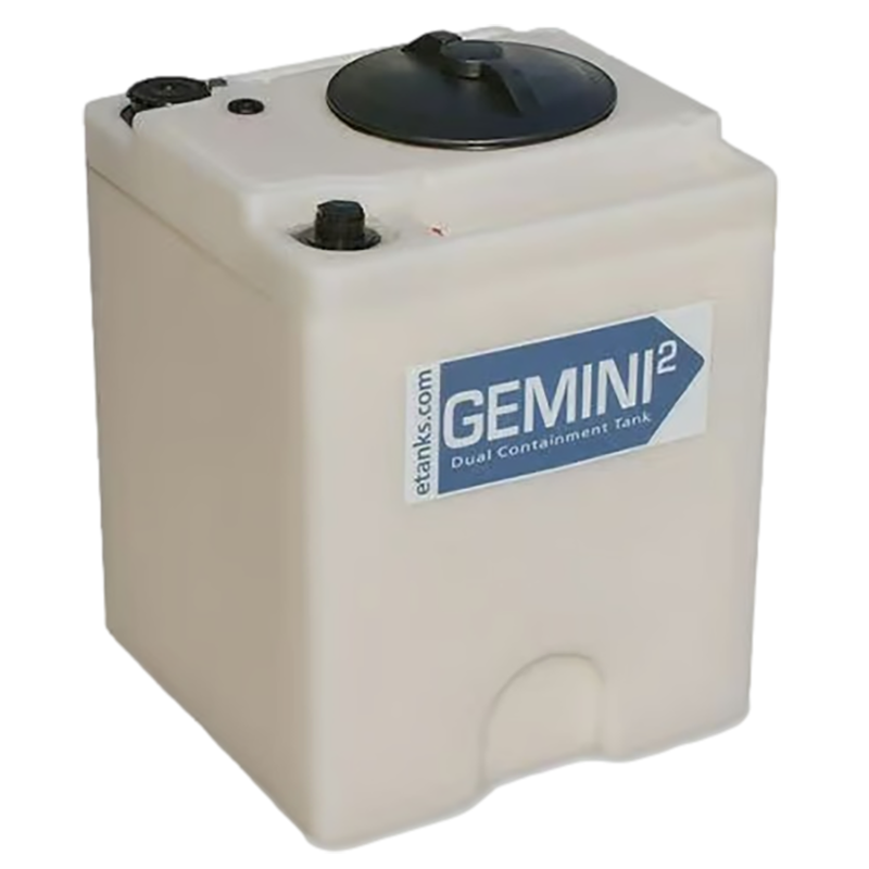 The Gemini² series of tanks are rated for a wide range of chemical applications. All tanks meet or exceed secondary containment regulations set under EPA 49CFR. These tanks are designed with a pump mounting surface, female threaded connections, and a twist lid inspection port.