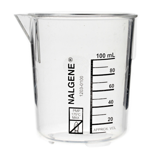 Continuously use Nalgeneā„¢ PMP Griffin Low-Form Beakers at temperatures of 150°C with intermittent service to 175°C. These polymethylpentene beakers have the transparency of glass, excellent chemical resistance and heat tolerance. All sizes of beakers have easy to read, silk-screened graduations.