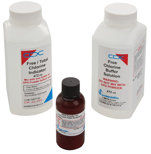 Includes buffer solution, indicator solution and DPD