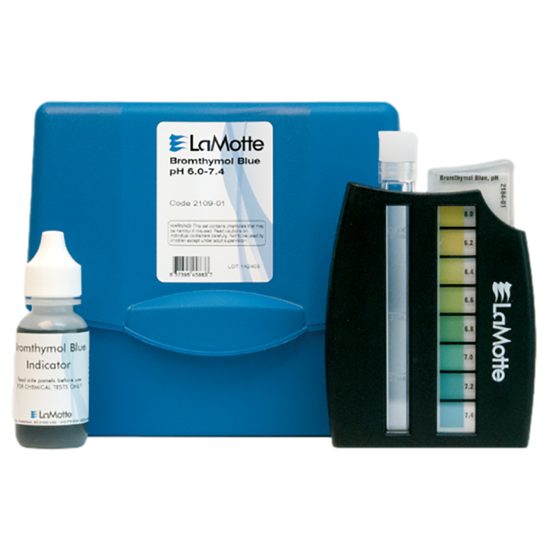 The LaMotte pH Test Kit tests for pH using Octa-Slide 2 Comparator ranging from 6.0 - 7.4 pH.