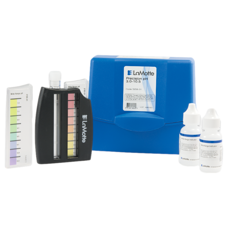 This kit tests for pH using the Octa-Slide 2 Comparator. Covers a wide pH range from 3.0 - 10.5 pH.
