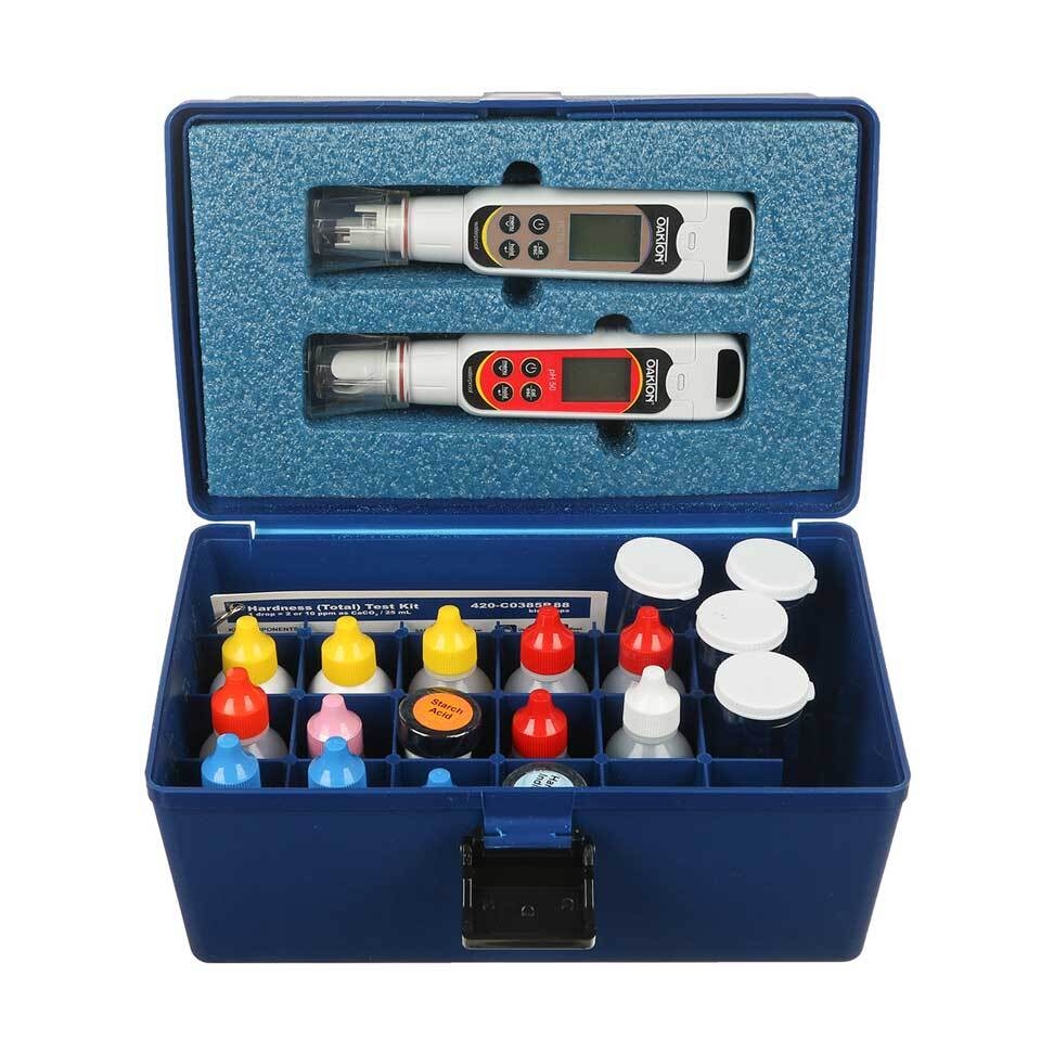 The Boiler Water Test Kit 200 combines six common test parameters and two meters into one, easy-to-use combination test kit.. The kit is packaged in a durable plastic case with handle for easy transport. The kit includes all necessary reagents and EndPoint ID test instructions for monitoring Alkalinity, Chloride, Total Hardness, Calcium Hardness, Sulfite and Orthophosphate. We also added the Oakton pHTester 50 and Oakton CTSTestr 50P in the foam lid. Test parameters and ranges can be modified based on your specific needs as can be the meters. Browse our product line and let us know how we can help customize this kit to fit your needs.