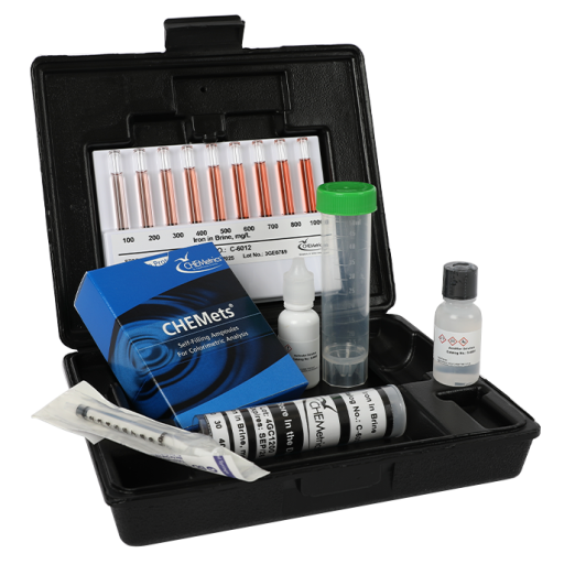 C-6002 Low Range Iron in Brine Comparator is a component of K-6002 Iron in Brine CHEMets Visual Test Kit and is designed to be compared against the color formed in R-6002 Iron in Brine CHEMets Refill. The comparator’s range is applicable to many industrial applications. Color standards are orange in color and cover a range of 0-100 mg/L.