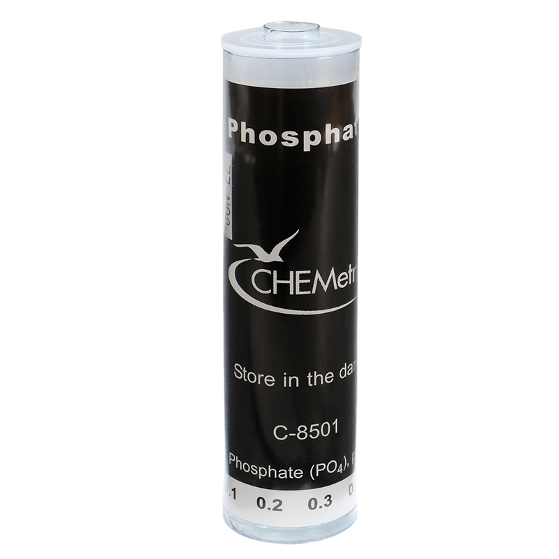 C-8501 Low Range Phosphate, ortho Comparator is a component of K-8510 Phosphate,ortho CHEMets Visual Test Kit and is designed to be compared against the color formed in R-8510 Phosphate, ortho CHEMets Refill. The comparator’s range is applicable to many environmental and water treatment applications. Color standards are blue in color and cover a range of 0-1.0 ppm PO4.